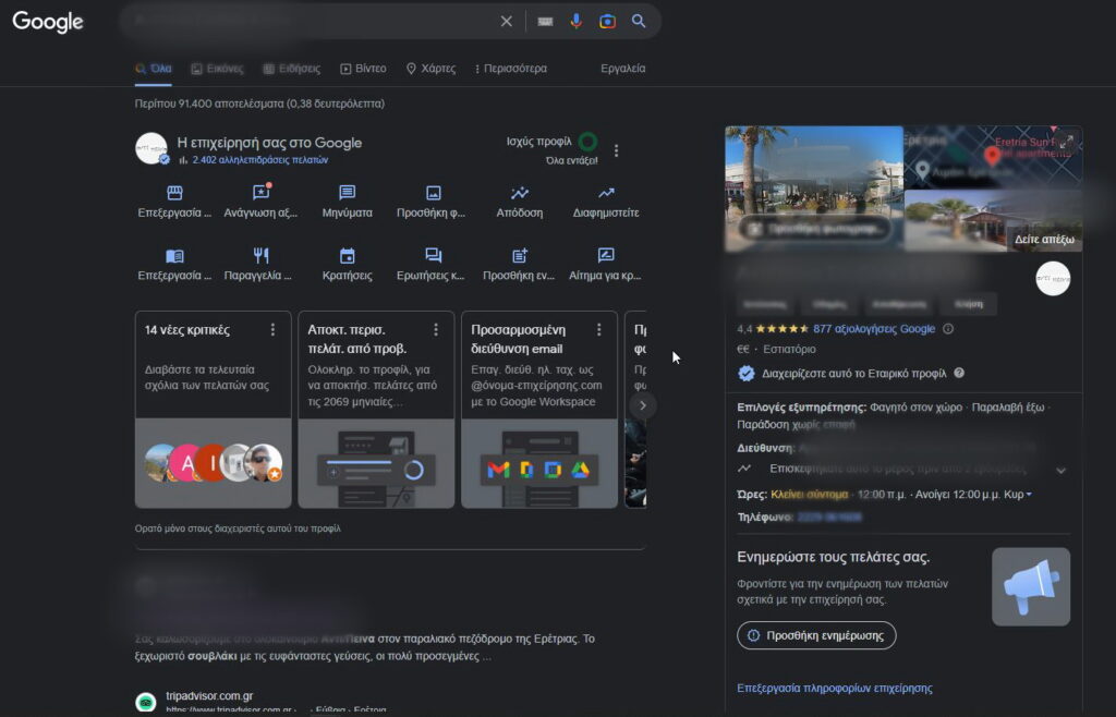 Αποκτήστε ολοκληρωμένη παρουσία στη μεγαλύτερη μηχανή αναζήτησης, Google μέσο του προφίλ της επιχείρησης σας στο Google My Business.